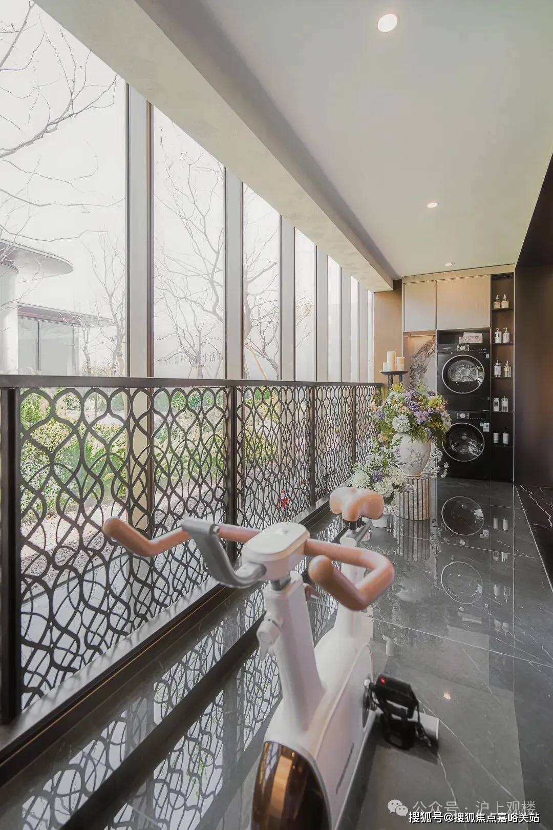 阳台雕栏采用定制扭转几何制型,通过金属锻制的曲线弧度取光影折射,将功能性构件为艺术安拆,于细节处彰显奇特审美档次。超长不雅景阳台。